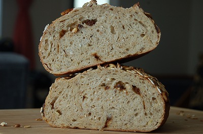 I made it with whole meal flour sour dough starter. It makes brownish crumb.